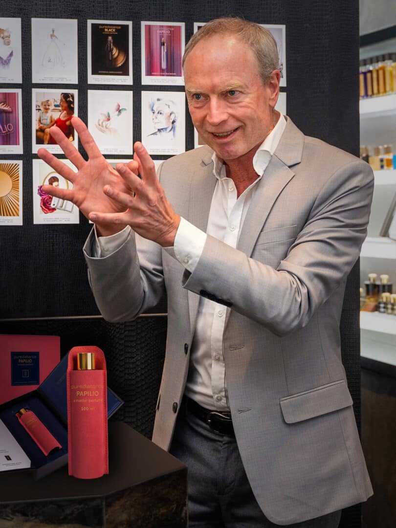 Then, again one year later – December 2022 – I am sitting in Belleville in Paris writing a poem that tells the story of PAPILIO. This poem, along with this introduction, is all I will tell about this new perfume. – Puredistance Founder Jan Ewoud Vos