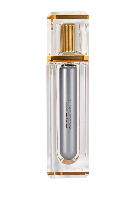 A timelessly beautiful accessory to the 17.5ml Perfume Spray is the Puredistance Crystal Column, designed to perfectly hold the Perfume Spray. This jewel is exclusively produced for Puredistance by the prestigious Swarovski company. It’s made of the purest crystal, accented with 24 carat gold.
